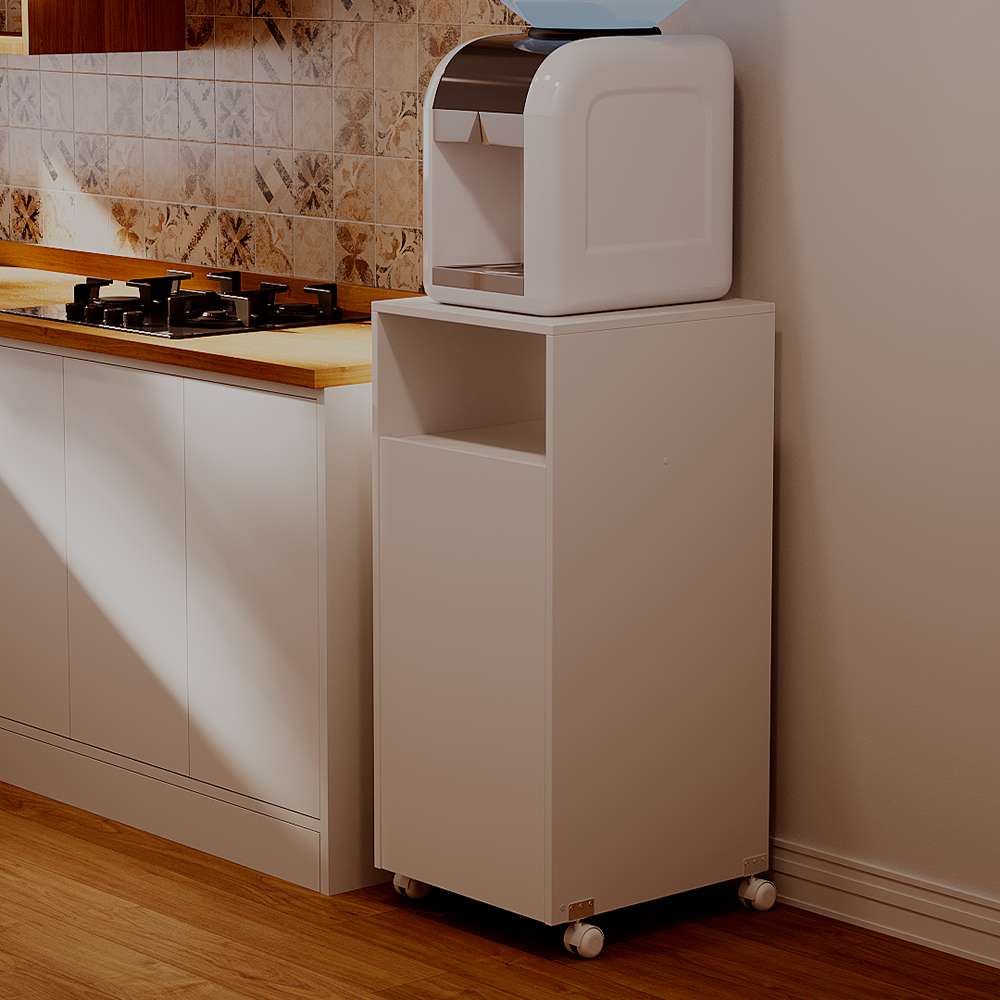 Com design compacto e funcional, ele acomoda perfeitamente o botijão de 13kg, deixando o ambiente mais bonito e seguro. Além disso, possui rodinhas que facilitam a movimentação, tornando a limpeza e a reorganização da sua cozinha muito mais prática.
