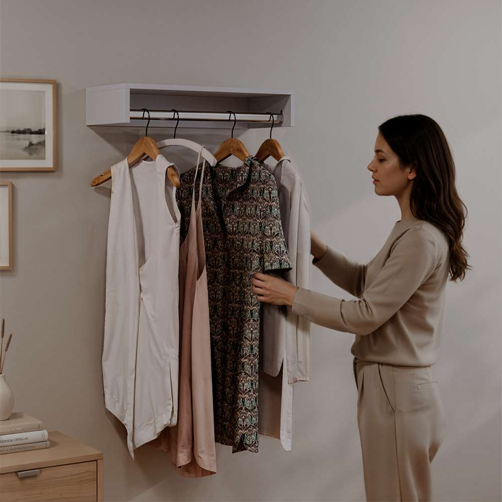 Perfeito para uso em closet, quarto, lavanderia, lojas de roupas, vestiários, entre outros.