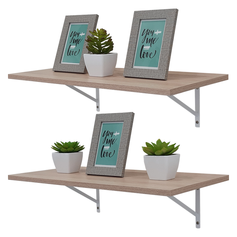 Kit 2 Prateleiras 80 x 30cm Carvalho Com Mão Francesa. A prateleira Crie Fácil foi desenvolvida pensando em deixar o seu ambiente mais organizado e criativo de forma prática e simples. Produto produzido em MDP de alta qualidade garantindo resistência e durabilidade. A prateleira é acompanhada de mão francesa para fixação na parede. Cor: Carvalho. Tamanho: 80 x 30cm. Material: Madeira MDP. Fixação: mão francesa (2 unidades por prateleiras). Instruções de uso e instalação: Para fácil limpeza, utilize pano levemente umedecido. Não utilizar produtos químicos ou abrasivos. Acompanha embalagem com as instruções de montagem e fixação. *Observação: todos os itens de decoração das fotos não acompanham o produto