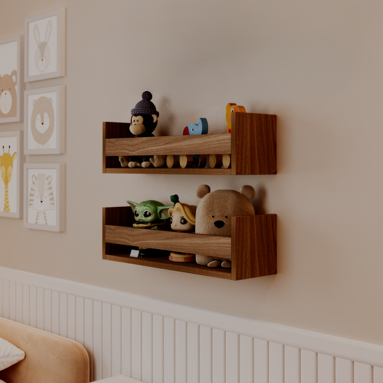 Kit 2 Prateleiras Porta Brinquedos Freijó 50 x 12cm Suporte Invisivel é perfeita para tornar o seu ambiente mais criativo e moderno.