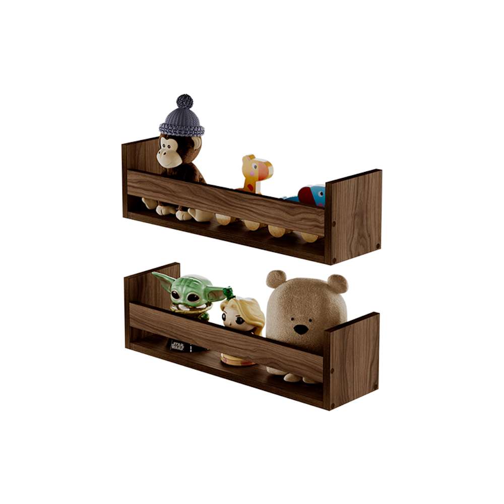 Kit 2 Prateleiras Porta Brinquedos Nogal 50 x 12cm Suporte Invisivel é perfeita para tornar o seu ambiente mais criativo e moderno.