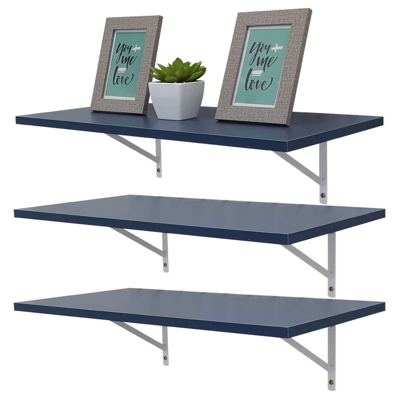 Kit 3 Prateleiras 80 x 30cm azul Com Mão Francesa