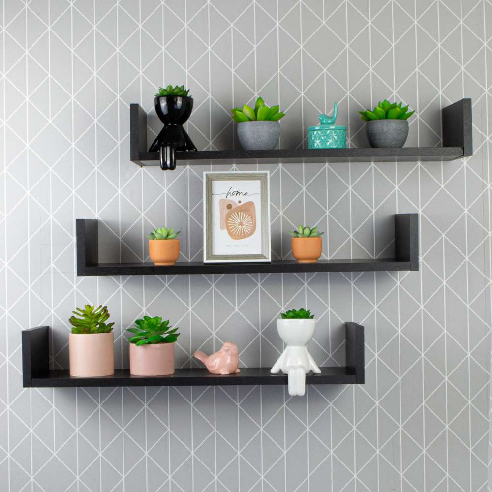 O Kit 3 Prateleiras Nichos em U 60x15 MDF Preto com Suporte Flutuante Invisível é perfeita expor seus livros favoritos e coleções, garantindo um charme e delicadeza ao seu ambiente.