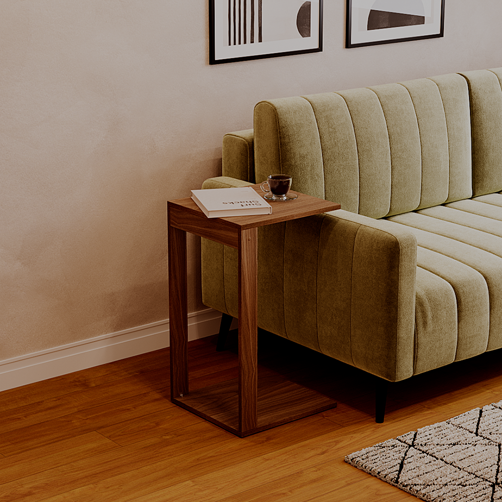 Com design compacto, esta mesinha é perfeita para otimizar o ambiente, oferecendo um suporte versátil para livros, bebidas, laptops e outros itens essenciais do dia a dia.