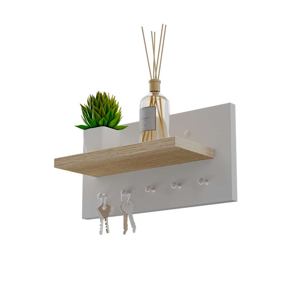 O Porta chaves Minimalista Organizador Decoração Branco e Carvalho foi desenvolvido para deixar seu hall de entrada mais organizado, prático e moderno — sem abrir mão da criatividade