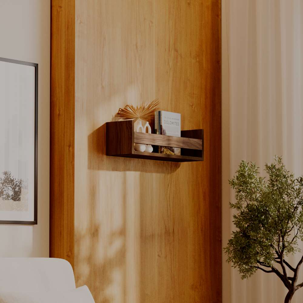 A Prateleira Porta Livro Nogal 50 x 12cm Suporte Invisivel é perfeita para tornar o seu ambiente mais criativo e moderno.