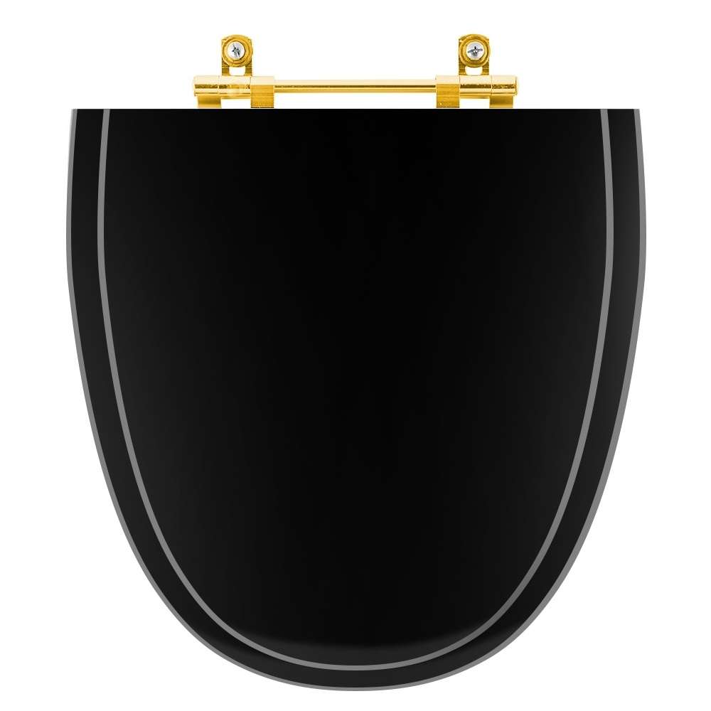 A Tampa de Vaso Laqueado Aloha Preto para bacia Celite com Ferragem Dourada é a opção ideal para quem busca combinar funcionalidade com elegância em seu banheiro.