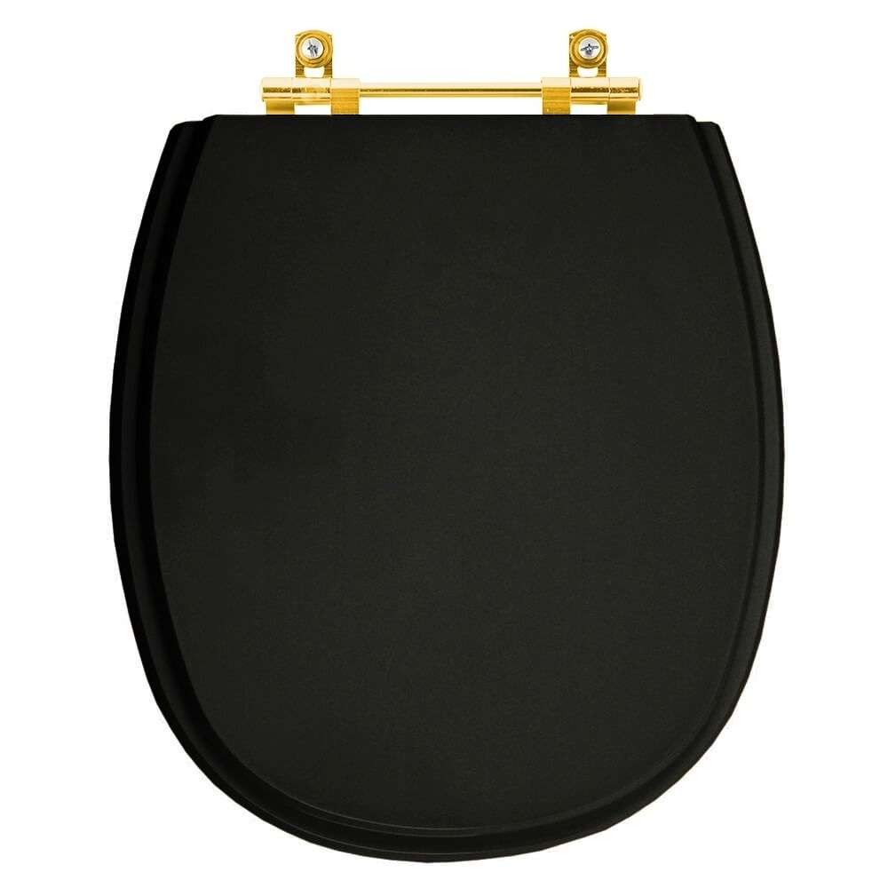 A Tampa de Vaso Laqueado Aspen Preto para bacia Deca com Ferragem Dourada é a opção ideal para quem busca combinar funcionalidade com elegância em seu banheiro.